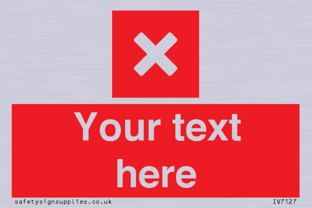 Suitable for mounting on a metallic surface. Suitable for hanging installation. Suitable for mounting on a flat surface. Suitable for mounting on a door. Custom signs contain the text required by the customer. With your your text and a standard safety sign symbol - a bespoke sign can fit any requirement.