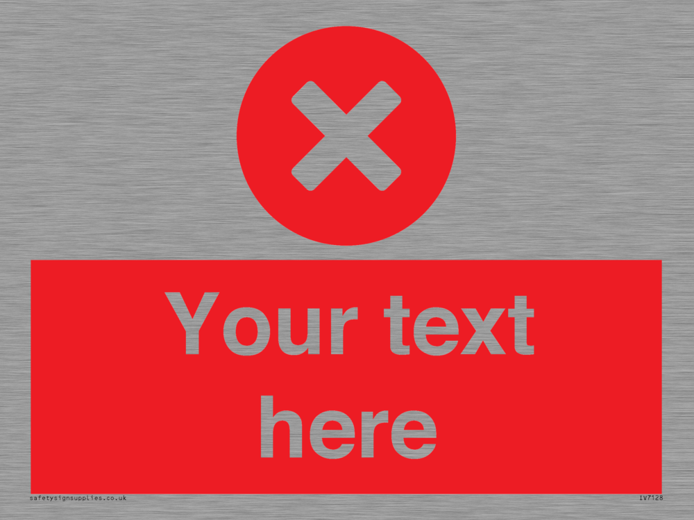 Suitable for mounting on a flat surface. Suitable for mounting on a door. Custom signs contain the text required by the customer. With your your text and a standard safety sign symbol - a bespoke sign can fit any requirement.