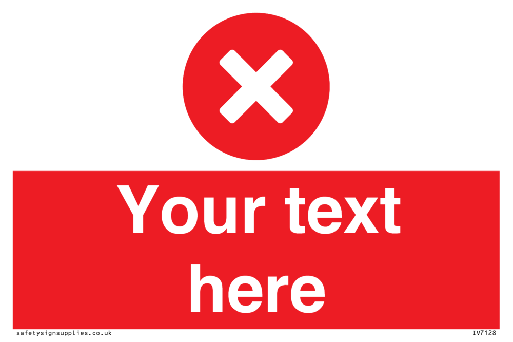 This product is design to be mounted on the ceiling. Custom signs contain the text required by the customer. With your your text and a standard safety sign symbol - a bespoke sign can fit any requirement.