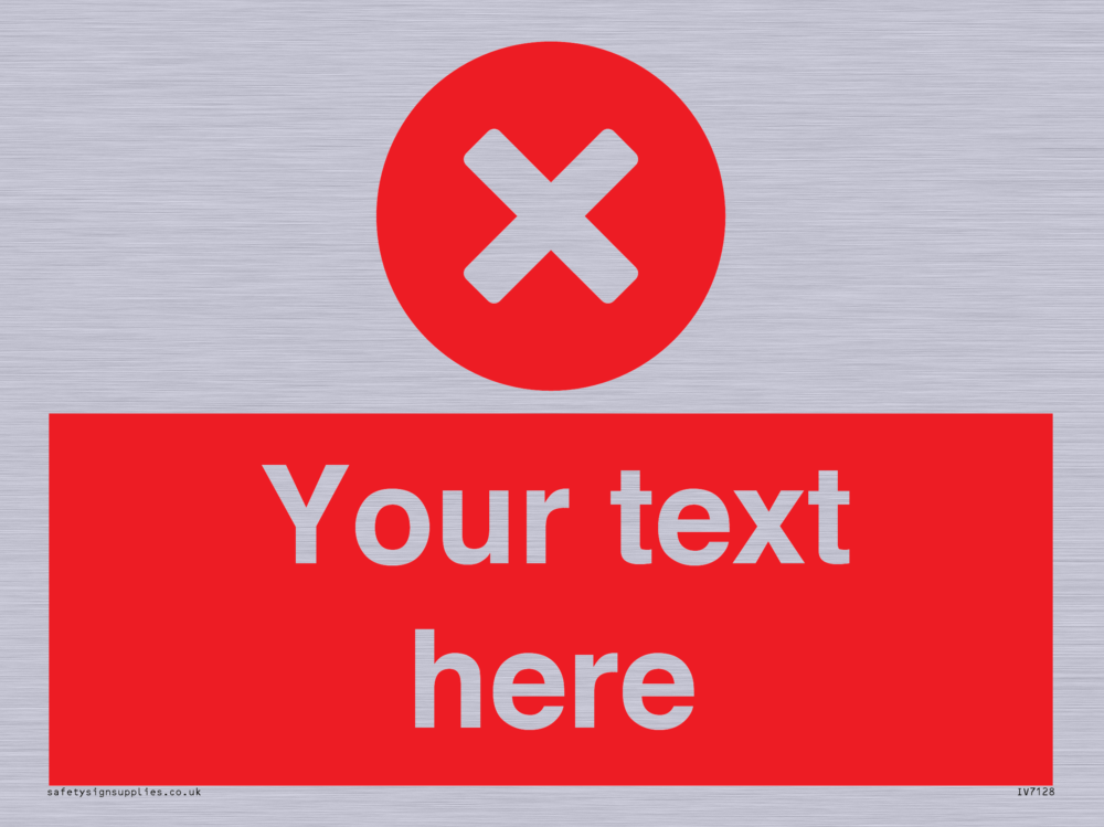 Suitable for mounting on a door. Custom signs contain the text required by the customer. With your your text and a standard safety sign symbol - a bespoke sign can fit any requirement.