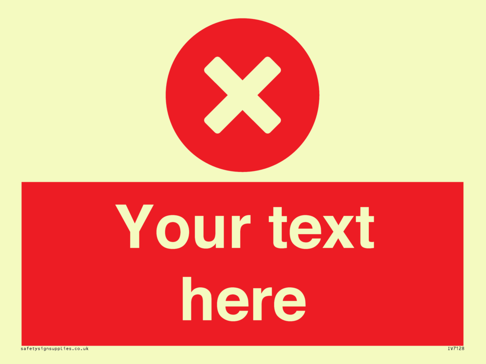 Suitable for mounting on a door. Suitable for mounting on cladding. This product is design to be mounted on the ceiling. Custom signs contain the text required by the customer. With your your text and a standard safety sign symbol - a bespoke sign can fit any requirement.