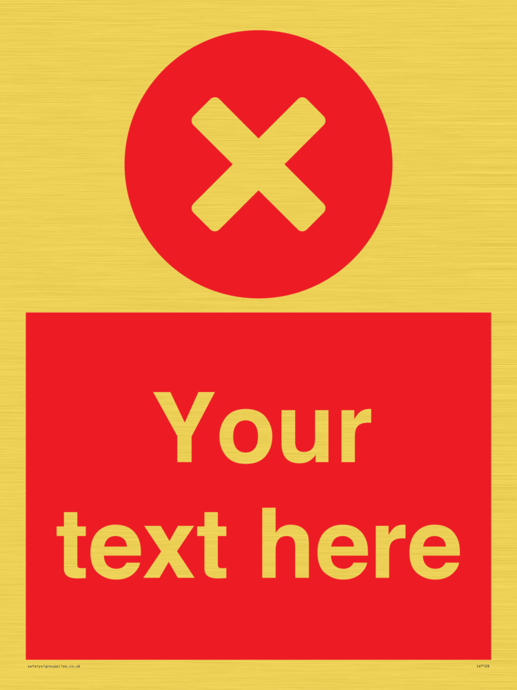 Custom signs contain the text required by the customer. With your your text and a standard safety sign symbol - a bespoke sign can fit any requirement.