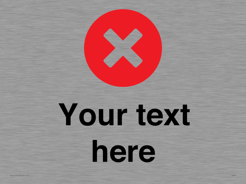 Suitable for mounting on a flat surface. Suitable for mounting on a door. Custom signs contain the text required by the customer. With your your text and a standard safety sign symbol - a bespoke sign can fit any requirement.