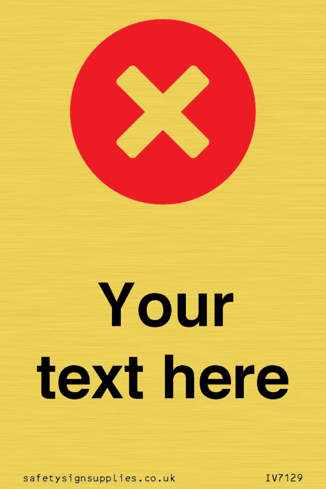 Suitable for mounting on a flat surface. Suitable for mounting on a door. Custom signs contain the text required by the customer. With your your text and a standard safety sign symbol - a bespoke sign can fit any requirement.