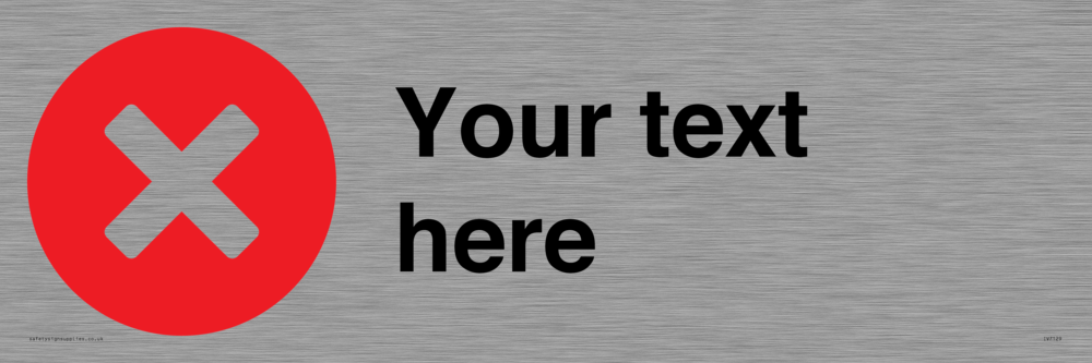 Suitable for mounting on a flat surface. Suitable for mounting on a door. Custom signs contain the text required by the customer. With your your text and a standard safety sign symbol - a bespoke sign can fit any requirement.