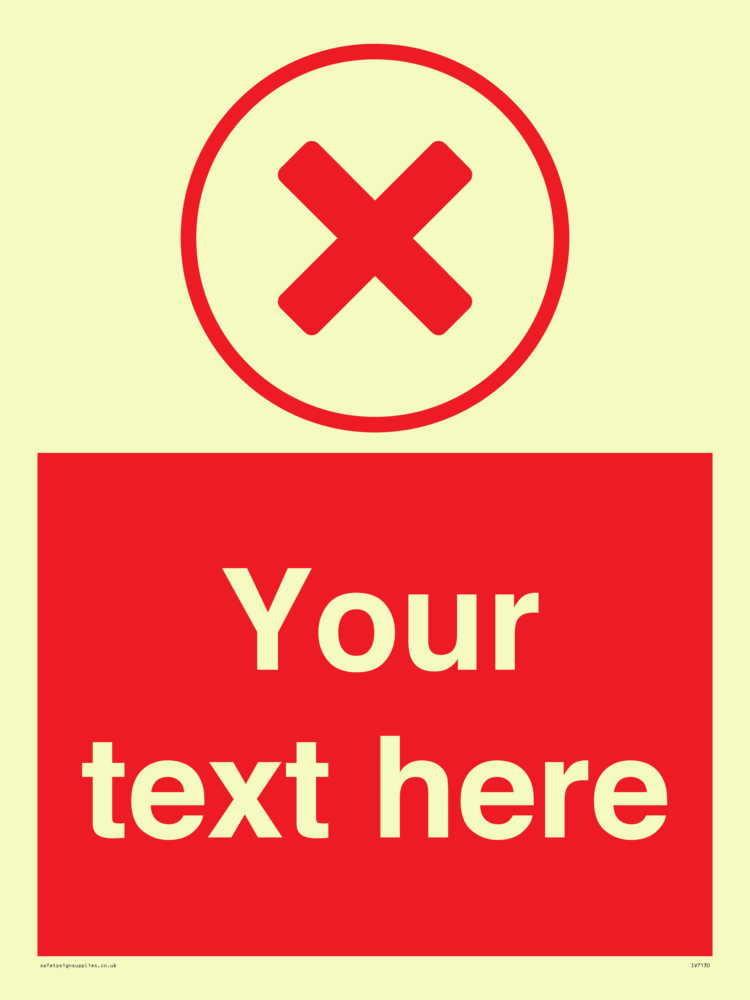 Suitable for mounting on a door. Suitable for mounting on cladding. This product is design to be mounted on the ceiling. Custom signs contain the text required by the customer. With your your text and a standard safety sign symbol - a bespoke sign can fit any requirement.
