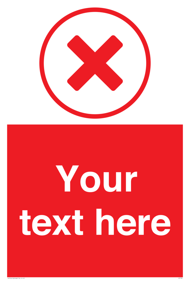 Custom signs contain the text required by the customer. With your your text and a standard safety sign symbol - a bespoke sign can fit any requirement.