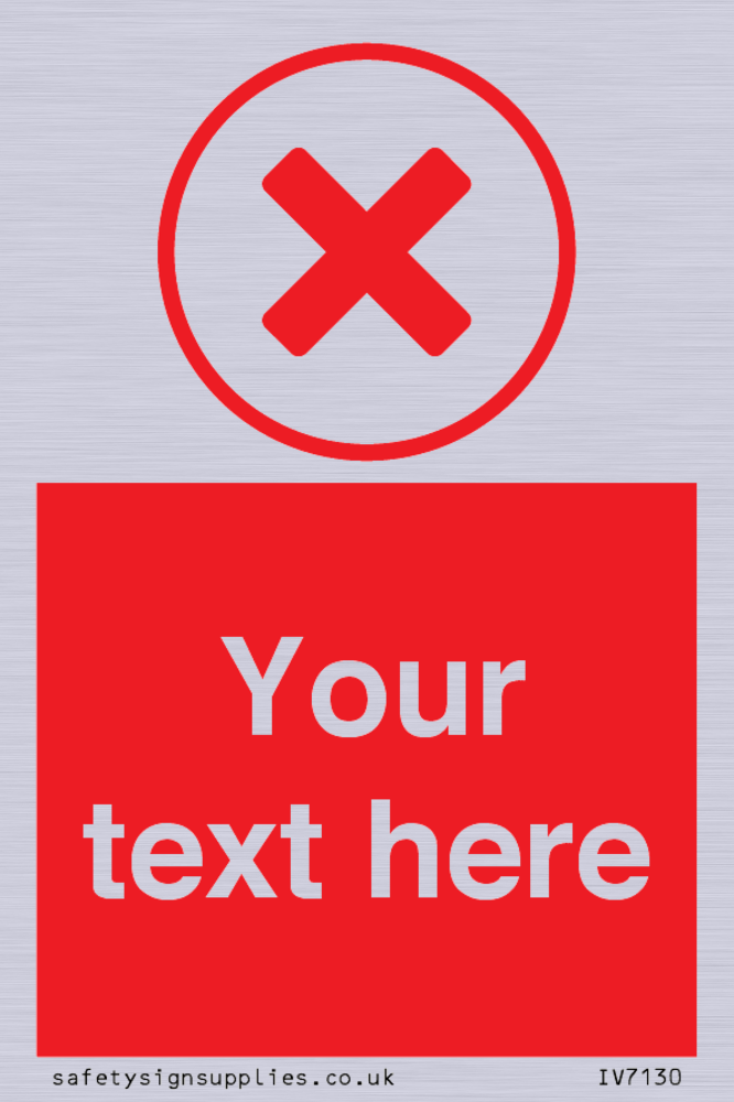 Suitable for mounting on a flat surface. Suitable for mounting on a door. Custom signs contain the text required by the customer. With your your text and a standard safety sign symbol - a bespoke sign can fit any requirement.