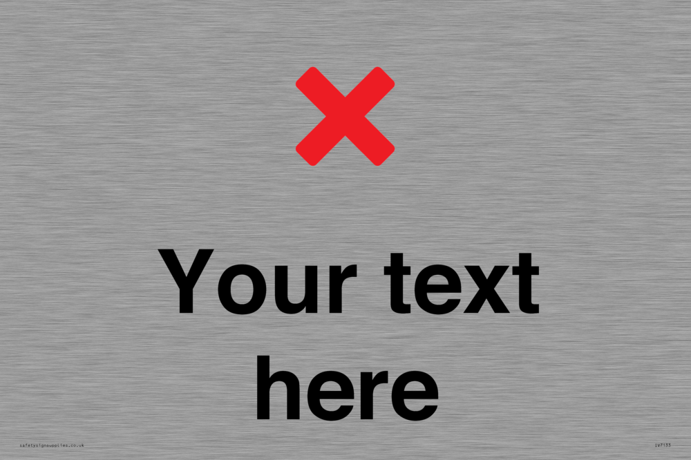 Suitable for mounting on a flat surface. Suitable for mounting on a door. Custom signs contain the text required by the customer. With your your text and a standard safety sign symbol - a bespoke sign can fit any requirement.