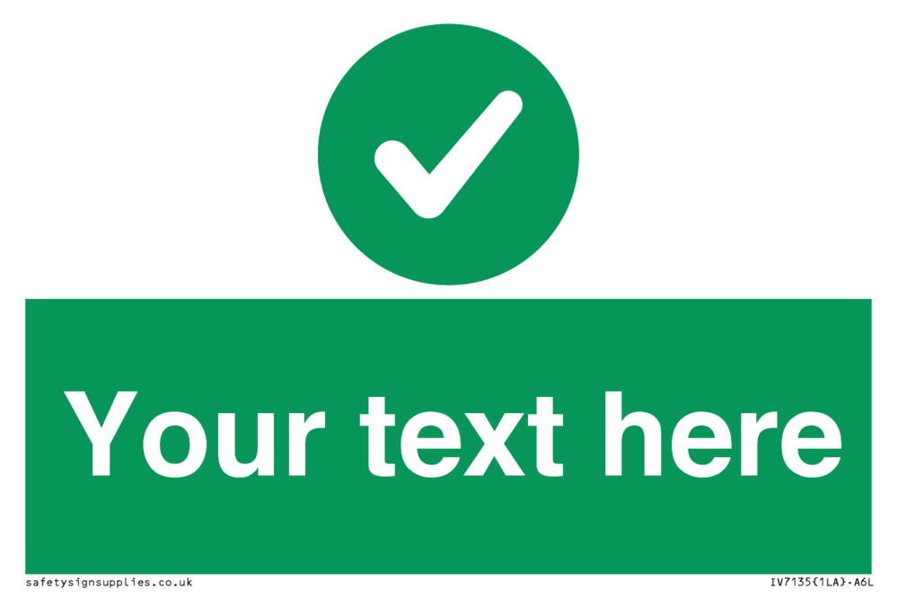 Sign Text: Your text here Dimensions: 150x100mm Material: Aluminium composite 3mm with lamination Orientation: Landscape Text Colour: White Background Colour: Green More...