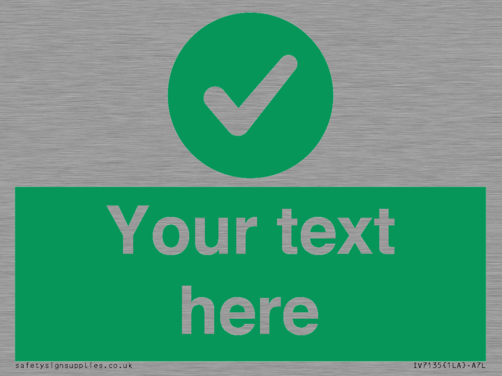 Sign Text: Your text here Dimensions: 100x75mm Material: Stainless Steel Orientation: Landscape Text Colour: White Background Colour: Green More...