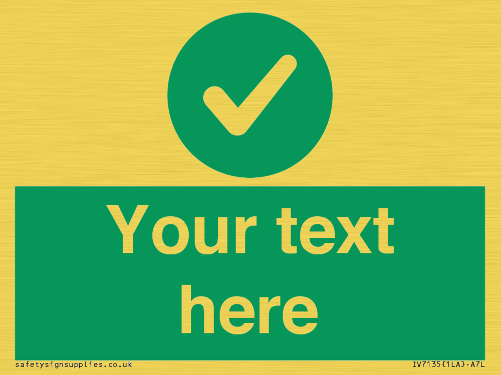 Sign Text: Your text here Dimensions: 100x75mm Material: Plastic Semi-rigid Gold Orientation: Landscape Text Colour: White Background Colour: Green More...