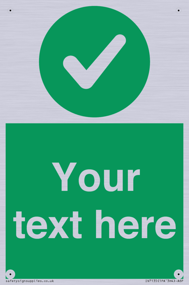 Sign Text: Your text here Dimensions: 100x150mm Material: Plastic Semi-rigid Silver Orientation: Portrait Text Colour: White Background Colour: Green More...