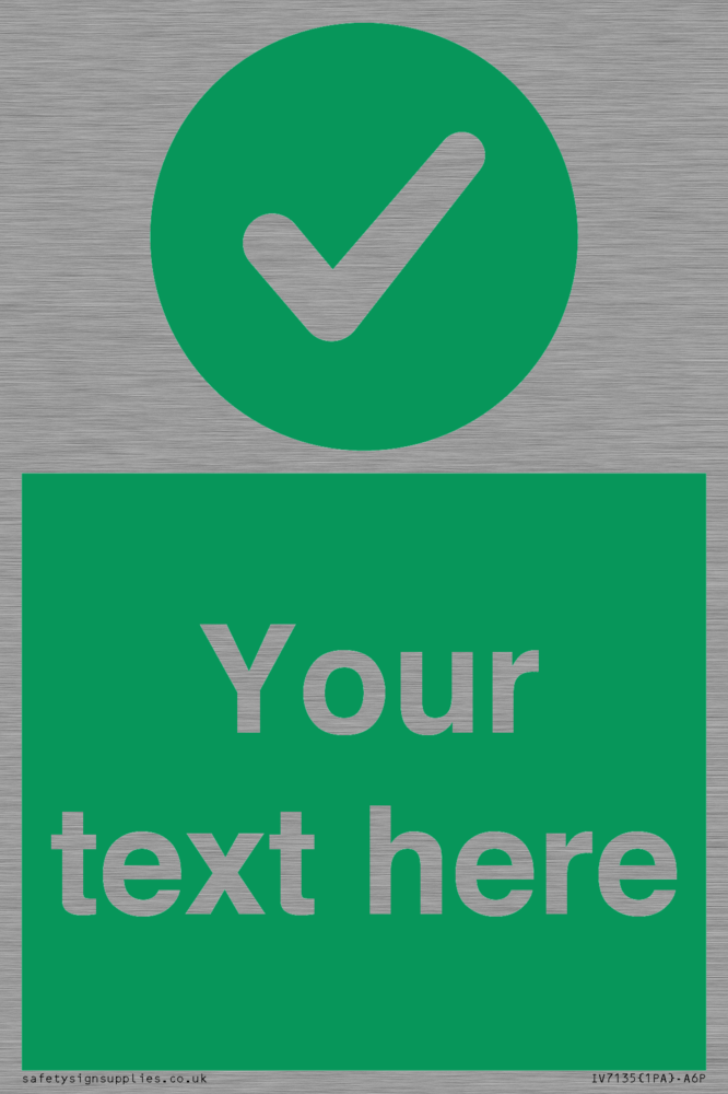 Sign Text: Your text here Dimensions: 100x150mm Material: Stainless Steel Orientation: Portrait Text Colour: White Background Colour: Green More...