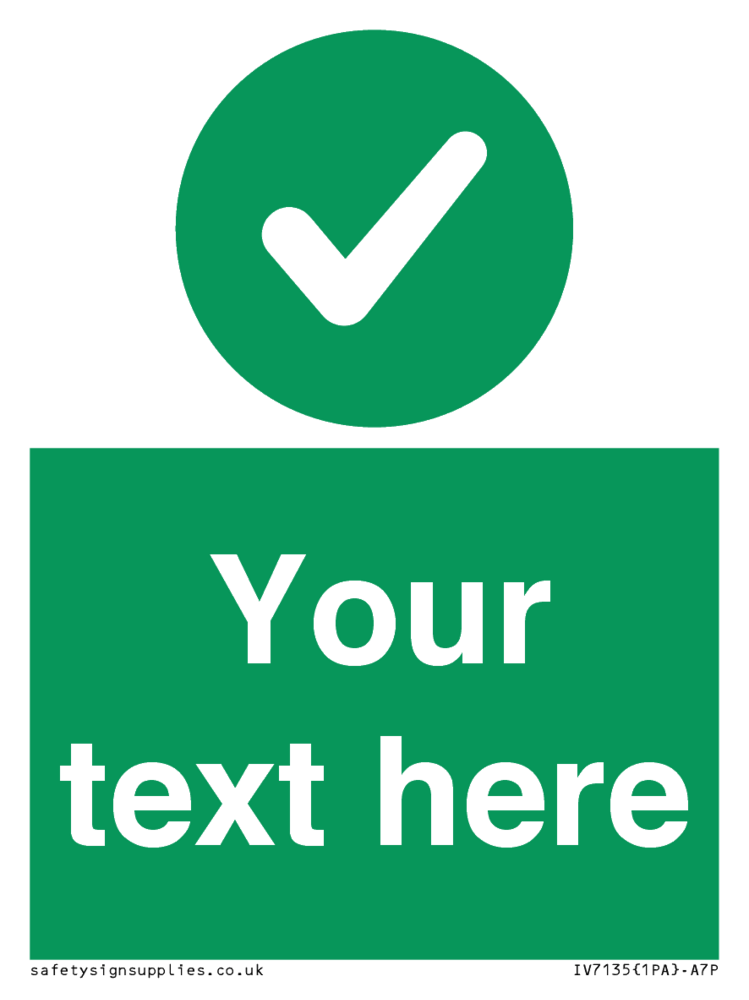 Sign Text: Your text here Dimensions: 75x100mm Material: Plastic Semi-rigid 1mm Orientation: Portrait Text Colour: White Background Colour: Green More...