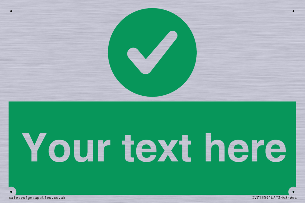 Sign Text: Your text here Dimensions: 150x100mm Material: Aluminium composite 3mm brushed silver Orientation: Landscape Text Colour: White Background Colour: Green More...