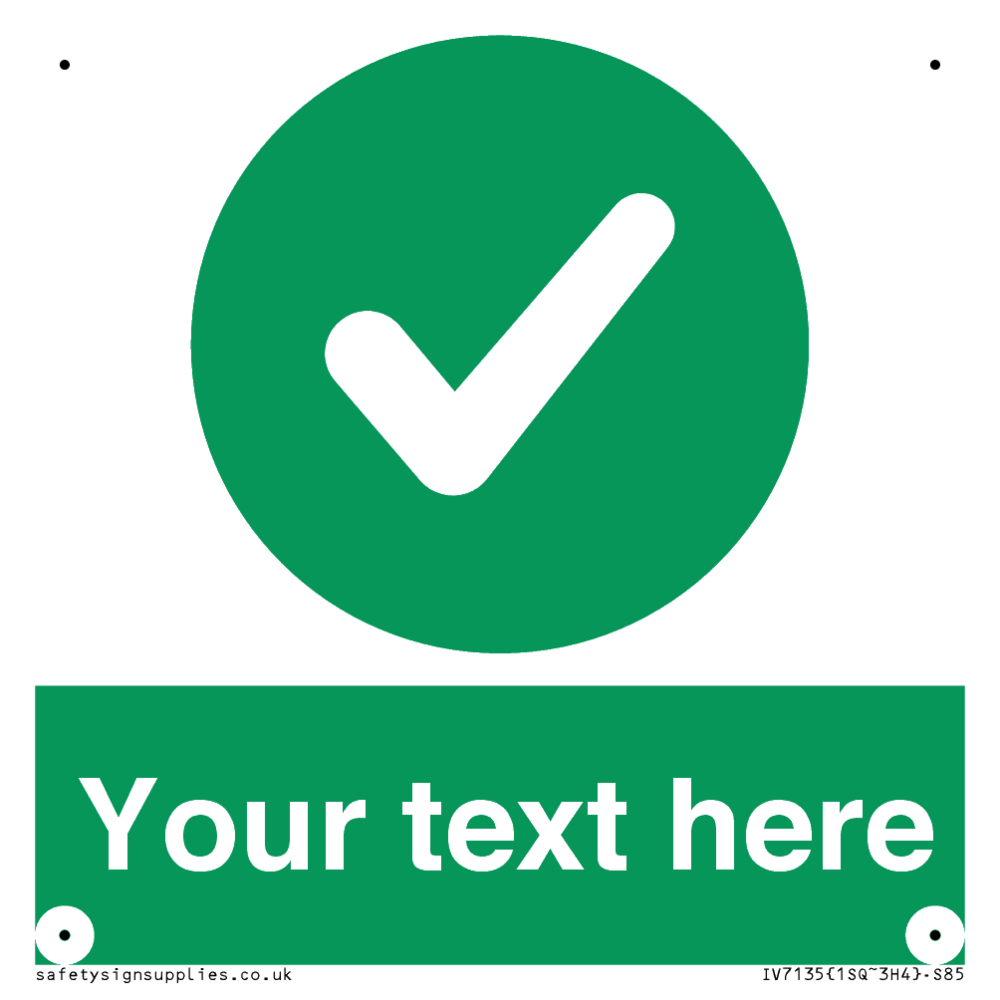 Sign Text: Your text here Dimensions: 85x85mm Material: Plastic Rigid 3mm Orientation: Square Text Colour: White Background Colour: Green More...