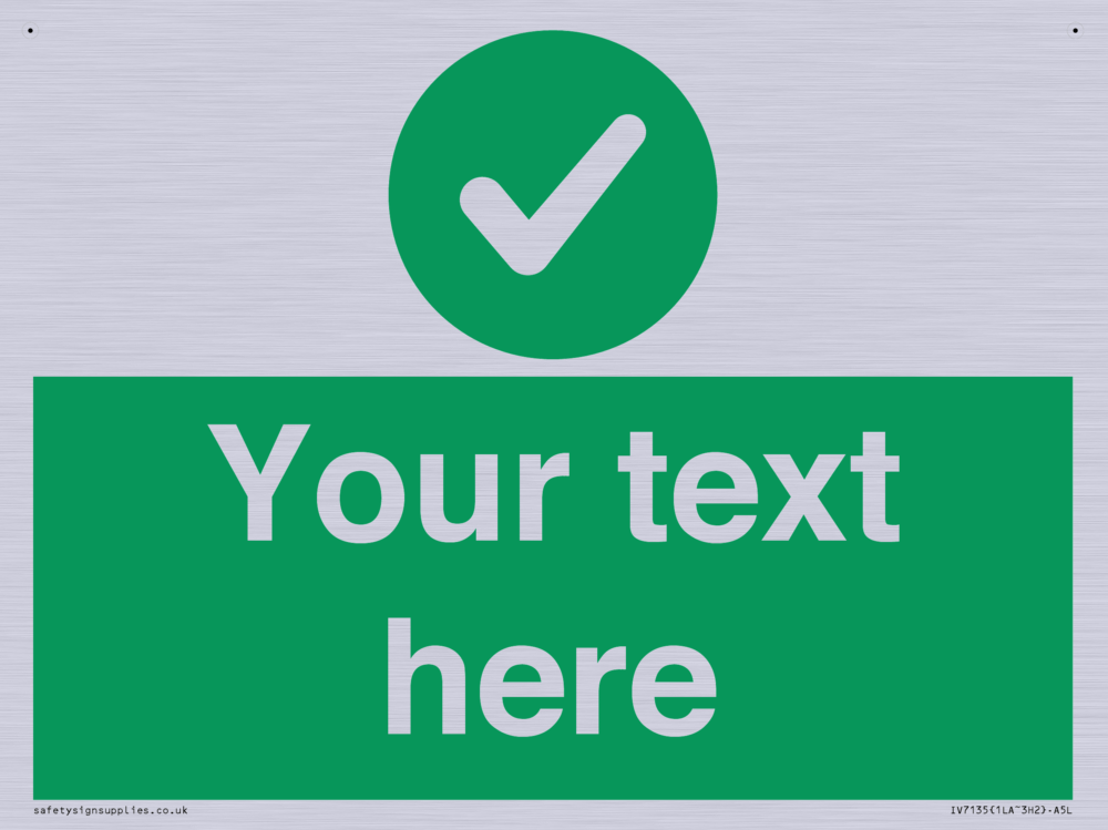 Sign Text: Your text here Dimensions: 200x150mm Material: Plastic Semi-rigid Silver Orientation: Landscape Text Colour: White Background Colour: Green More...