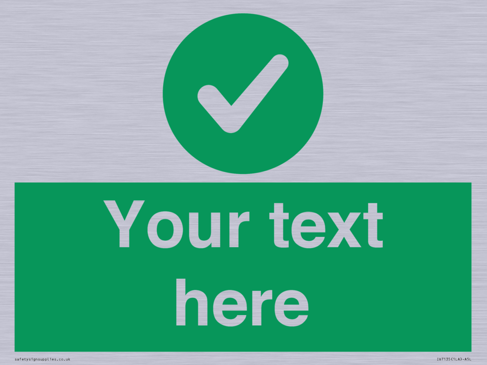Sign Text: Your text here Dimensions: 200x150mm Material: Aluminium composite 3mm brushed silver Orientation: Landscape Text Colour: White Background Colour: Green More...