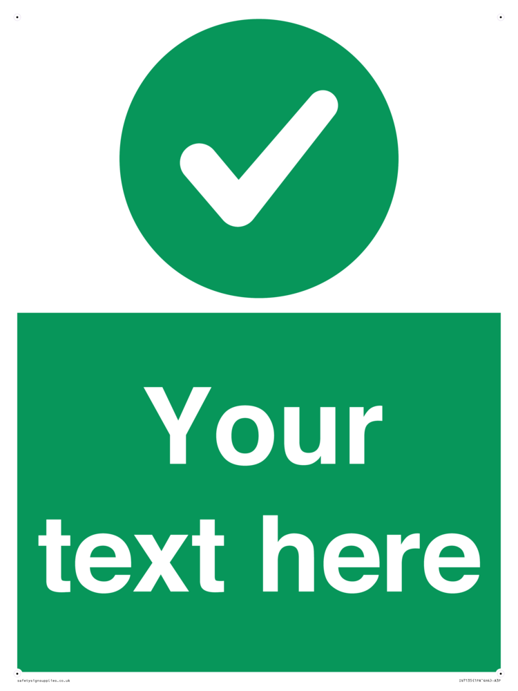 Sign Text: Your text here Dimensions: 300x400mm Material: Aluminium Composite 3mm Orientation: Portrait Text Colour: White Background Colour: Green More...
