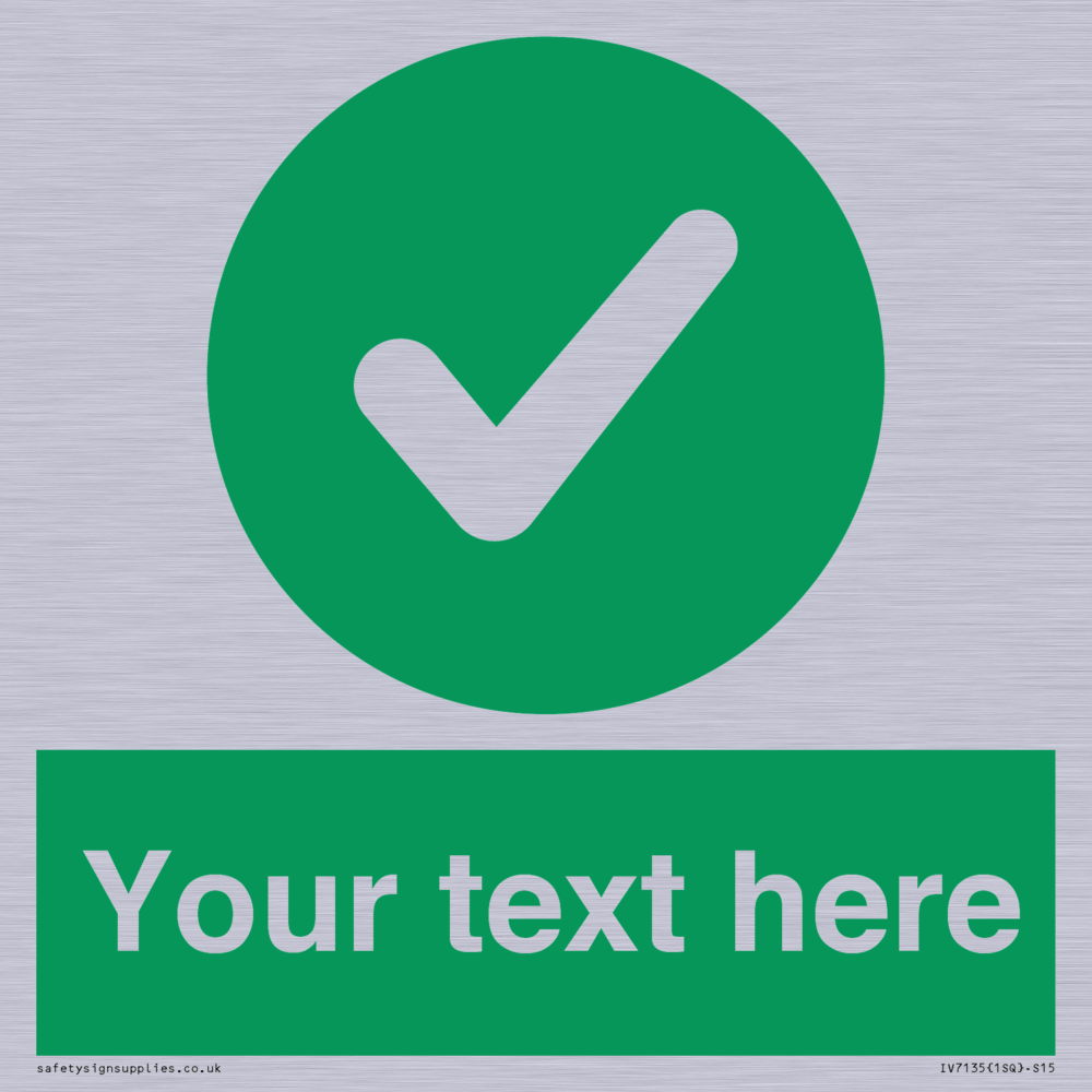 Sign Text: Your text here Dimensions: 150x150mm Material: Aluminium composite 3mm brushed silver Orientation: Square Text Colour: White Background Colour: Green More...