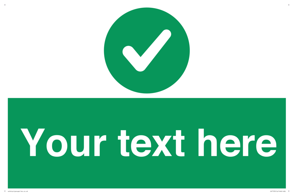 Sign Text: Your text here Dimensions: 600x400mm Material: Plastic Semi-rigid 1mm Orientation: Landscape Text Colour: White Background Colour: Green More...