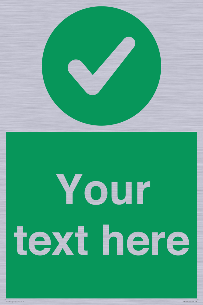 Sign Text: Your text here Dimensions: 400x600mm Material: Aluminium composite 3mm brushed silver Orientation: Portrait Text Colour: White Background Colour: Green More...
