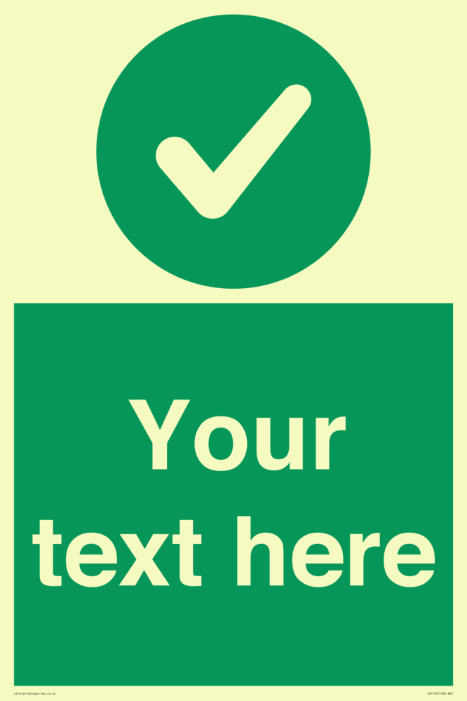 Sign Text: Your text here Dimensions: 400x600mm Material: Plastic Semi-rigid Photoluminescent Orientation: Portrait Text Colour: White Background Colour: Green More...
