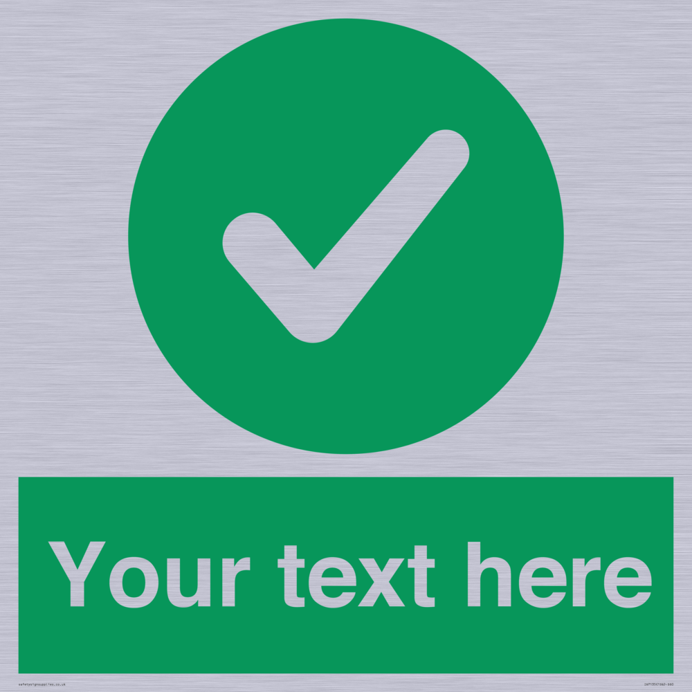 Sign Text: Your text here Dimensions: 600x600mm Material: Aluminium composite 3mm brushed silver Orientation: Square Text Colour: White Background Colour: Green More...