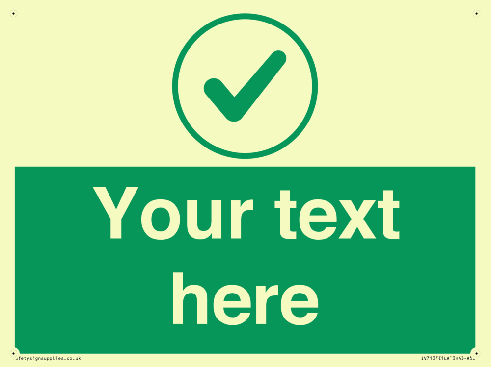 This is a photoluminescent, glow in the dark 1mm rigid pvc sign.