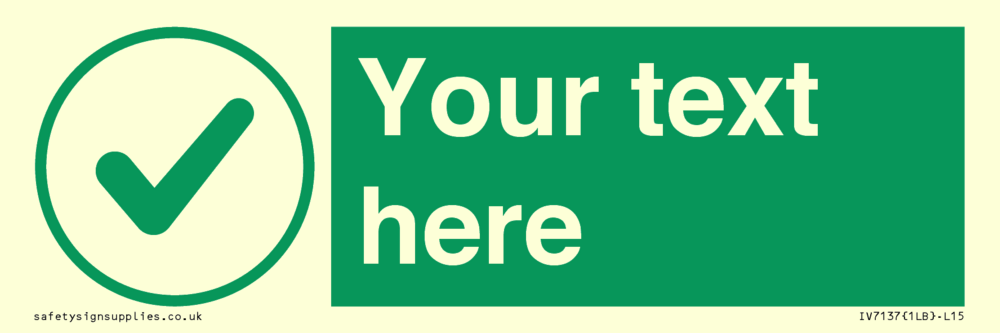 Sign Text: Your text here Dimensions: 150x50mm Material: Vinyl Photoluminescent sticker Text Colour: White Background Colour: Green Thickness / Depth: 170microns More...
