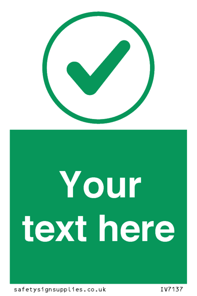 Suitable for mounting on a door. Suitable for mounting on cladding. This product is design to be mounted on the ceiling. Custom signs contain the text required by the customer. With your your text and a standard safety sign symbol - a bespoke sign can fit any requirement.
