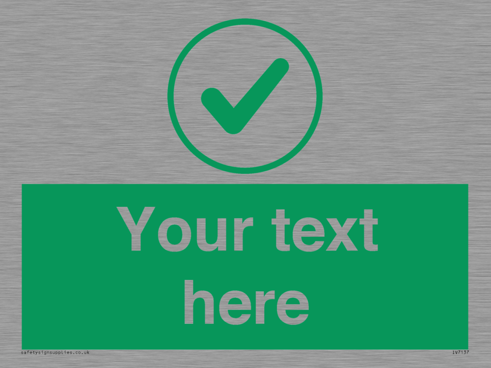 Suitable for mounting on a flat surface. Suitable for mounting on a door. Custom signs contain the text required by the customer. With your your text and a standard safety sign symbol - a bespoke sign can fit any requirement.