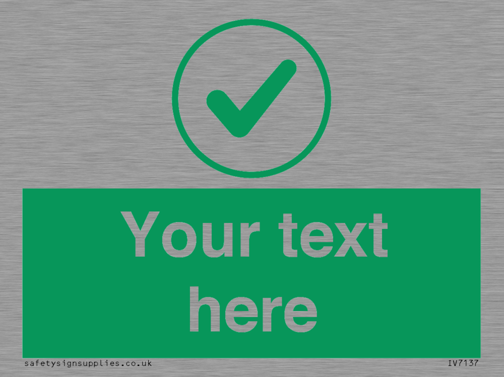 Suitable for mounting on a flat surface. Suitable for mounting on a door. Custom signs contain the text required by the customer. With your your text and a standard safety sign symbol - a bespoke sign can fit any requirement.