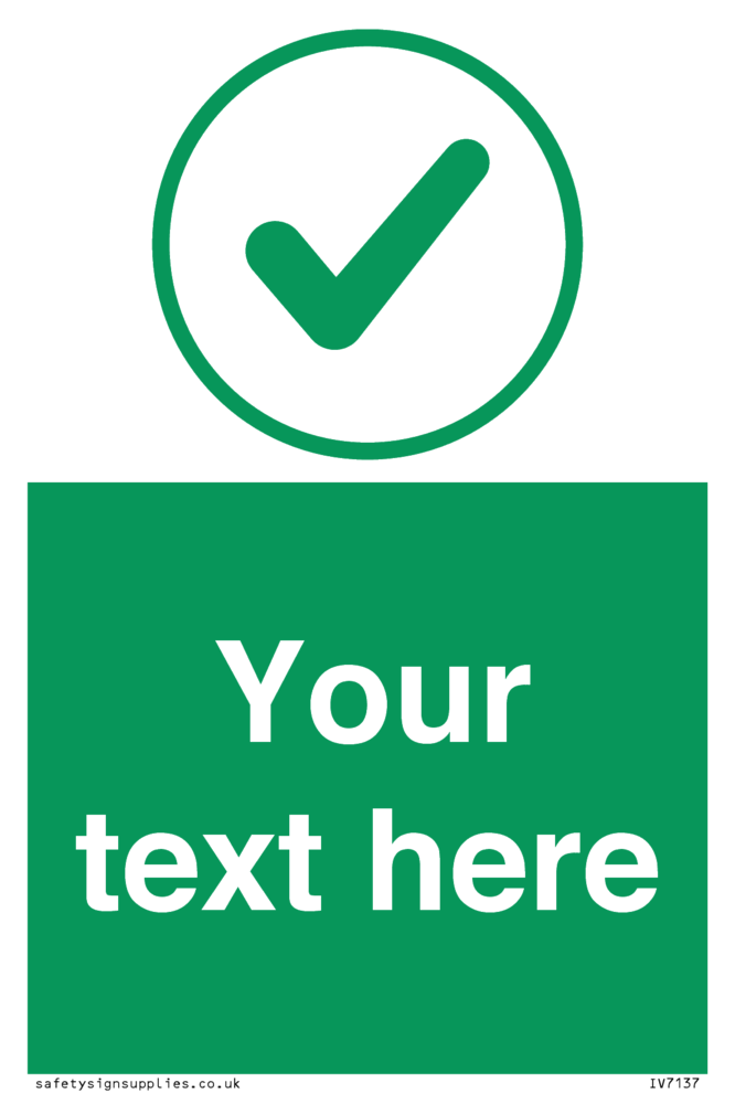 Suitable for mounting on a flat surface. Suitable for mounting on a door. Suitable for mounting on cladding. This product is design to be mounted on the ceiling. Custom signs contain the text required by the customer. With your your text and a standard safety sign symbol - a bespoke sign can fit any requirement.