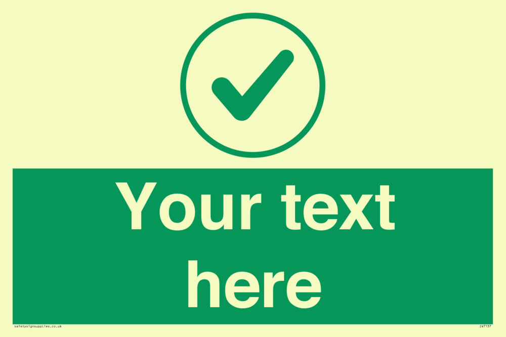 Suitable for mounting on a door. Suitable for mounting on cladding. This product is design to be mounted on the ceiling. Custom signs contain the text required by the customer. With your your text and a standard safety sign symbol - a bespoke sign can fit any requirement.