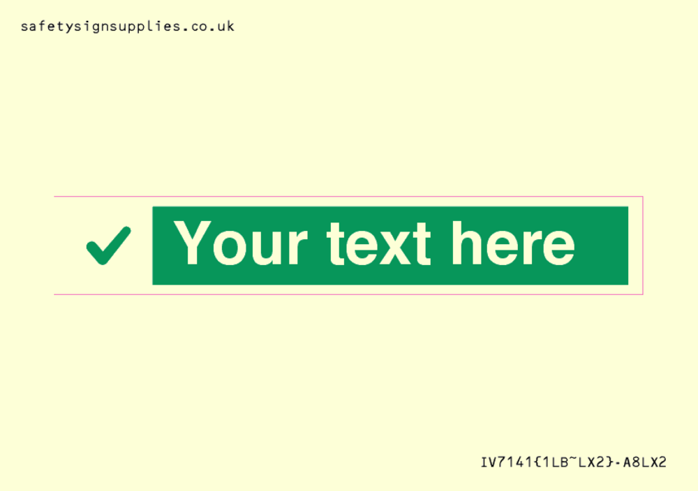 Mounting Surface: Window / Glass Materials: Sticker Material Colour: Glow in the Dark Custom Text: Custom Export Language: ENGLISH Language (EN) Symbol: I017 : Green tick Internal Layout: 1LB : 1 letterbox pod in a Letterbox Cut Configuration: 60x10mm Rectangle(s) Region: UK