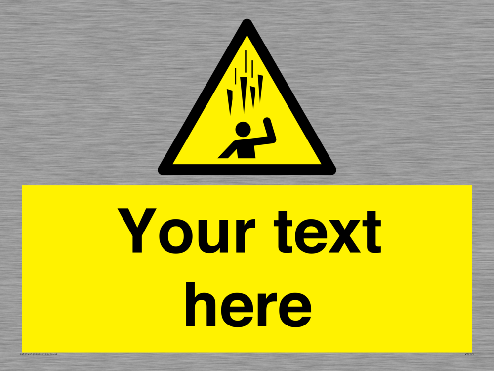 Suitable for hanging installation. Suitable for mounting on a flat surface. Suitable for mounting on a door. Custom signs contain the text required by the customer. With your your text and a standard safety sign symbol - a bespoke sign can fit any requirement.