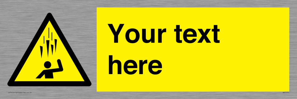 Suitable for hanging installation. Suitable for mounting on a flat surface. Suitable for mounting on a door. Custom signs contain the text required by the customer. With your your text and a standard safety sign symbol - a bespoke sign can fit any requirement.