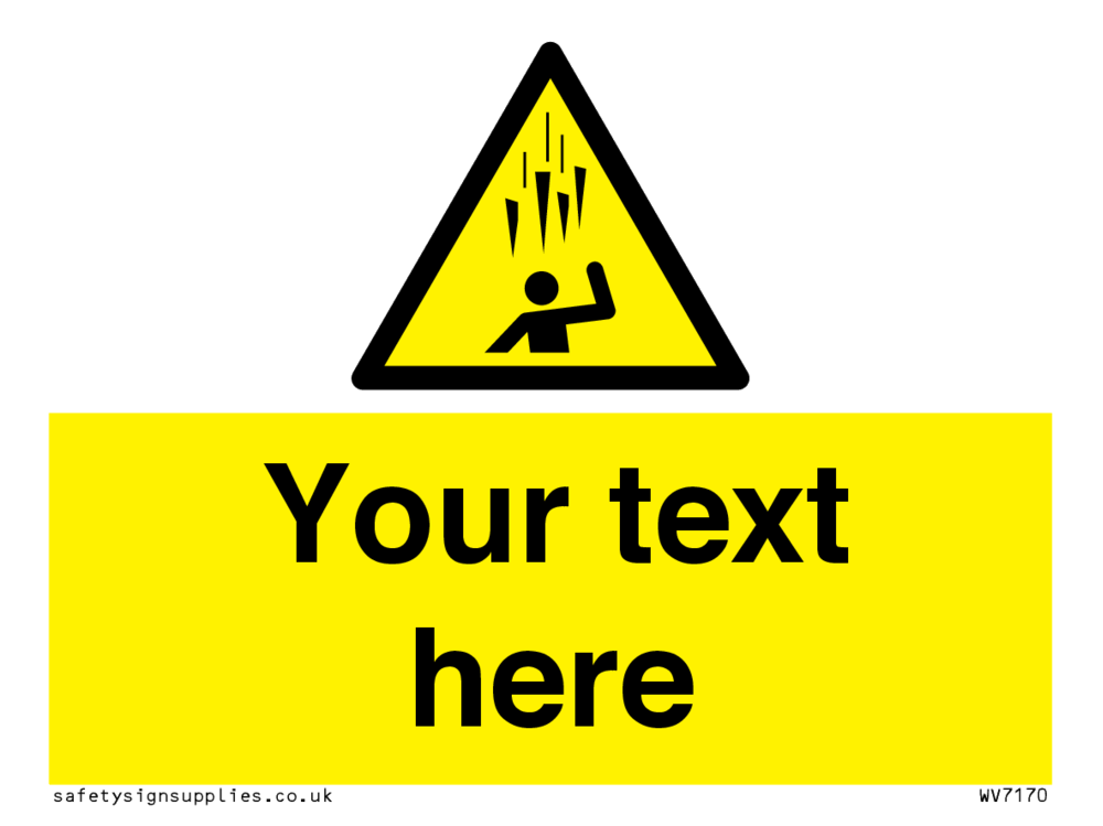 Suitable for mounting on cladding. This product is design to be mounted on the ceiling. Custom signs contain the text required by the customer. With your your text and a standard safety sign symbol - a bespoke sign can fit any requirement. Signs in this range are from our maximum choice range. Giving you the most choice of signs available in the UK.