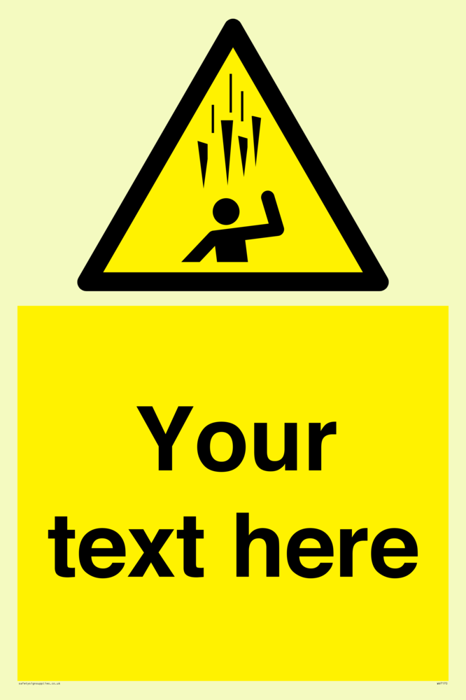 This product is design to be mounted on the ceiling. Custom signs contain the text required by the customer. With your your text and a standard safety sign symbol - a bespoke sign can fit any requirement. Signs in this range are from our maximum choice range. Giving you the most choice of signs available in the UK.