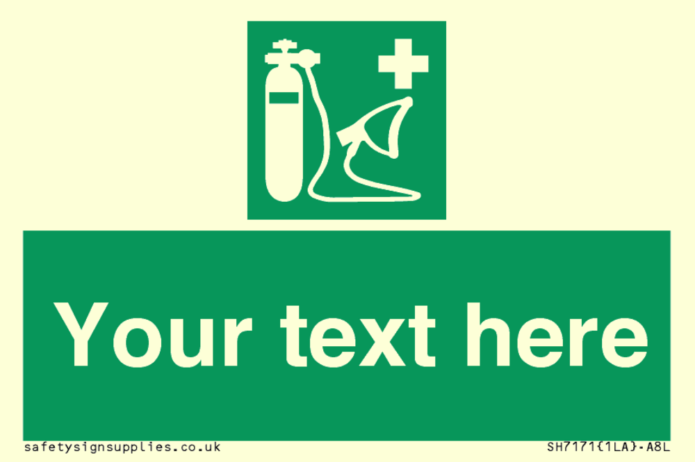 Thickness / Depth: 170microns Durability: 3-5 years Mounting Surface: flat Materials: Sticker Material Colour: Glow in the Dark Custom Text: Yes Language: ENGLISH Language (EN) Symbol: E028 : Oxygen resuscitator Internal Layout: 1LA : 1 landscape pod in a Landscape Region: UK