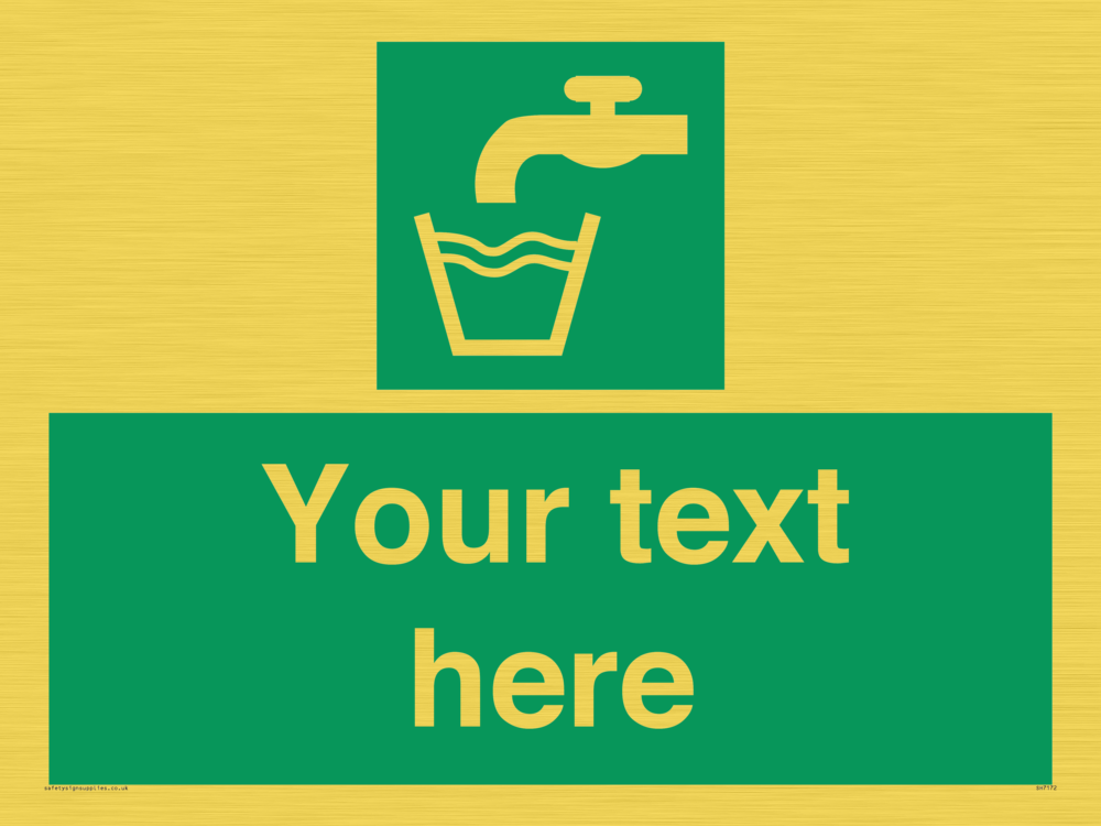 This sign contains a drinking water symbol - tap with water flowing into cup in white on green background.