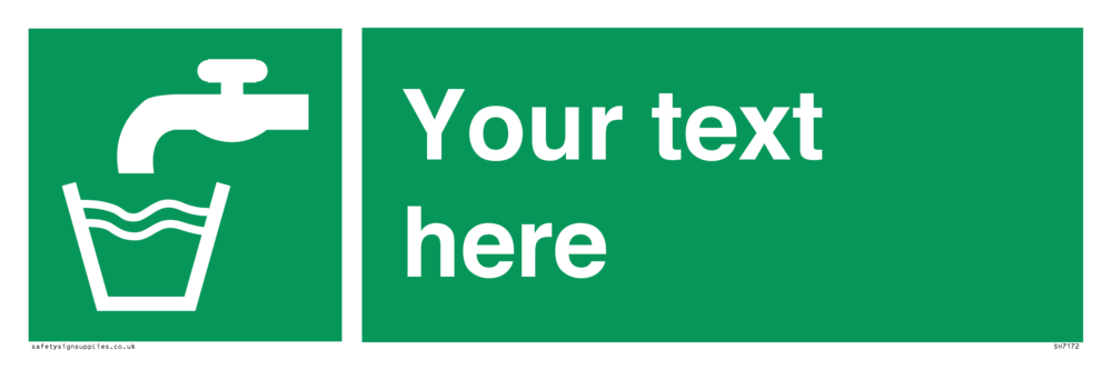 This sign contains a drinking water symbol - tap with water flowing into cup in white on green background.