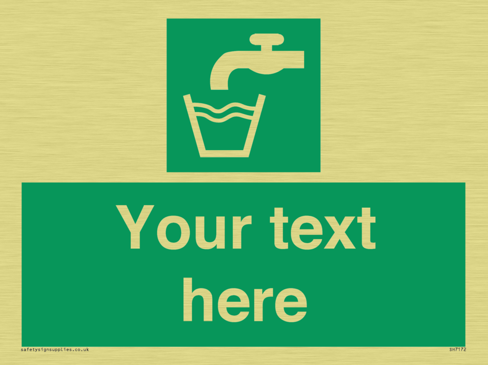 This sign contains a drinking water symbol - tap with water flowing into cup in white on green background.