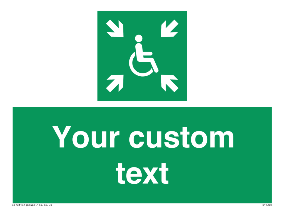 Suitable for mounting on a flat surface. Suitable for mounting on a door. Suitable for mounting on cladding. This product is design to be mounted on the ceiling. Custom signs contain the text required by the customer. With your your text and a standard safety sign symbol - a bespoke sign can fit any requirement.