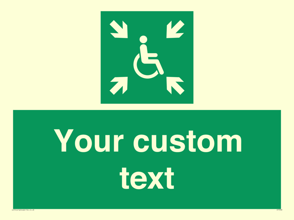 Function: To indicate the location of a temporary safe area (refuge) to await rescue assistance, provided for those unable to use stairs in the event of an evacuation.