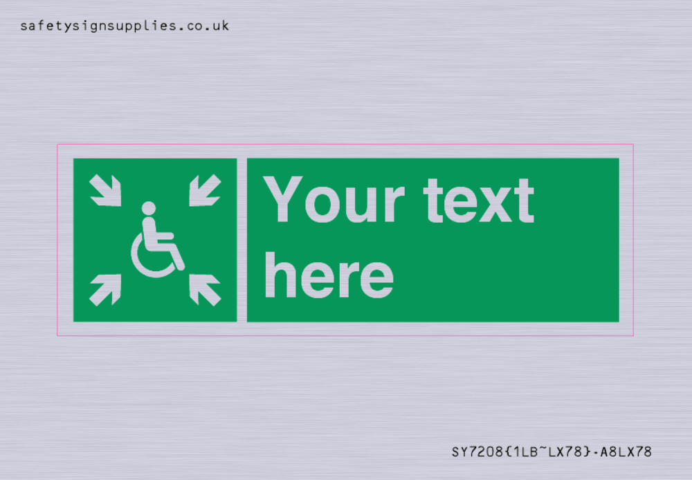 Durability: 3-5 years Mounting Surface: door Materials: Sticker Material Colour: Silver Custom Text: Yes Language: ENGLISH Language (EN) Symbol: E024 : Evacuation temporary refuge Internal Layout: 1LB : 1 letterbox pod in a Letterbox Cut Configuration: 60x20mm Rectangle(s) Region: UK