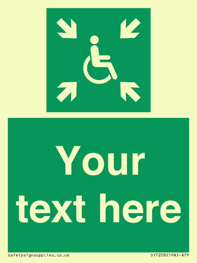 Function: To indicate the location of a temporary safe area (refuge) to await rescue assistance, provided for those unable to use stairs in the event of an evacuation.