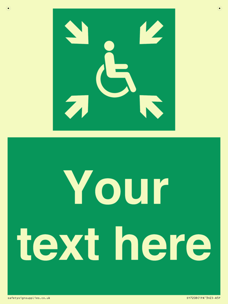 Function: To indicate the location of a temporary safe area (refuge) to await rescue assistance, provided for those unable to use stairs in the event of an evacuation.